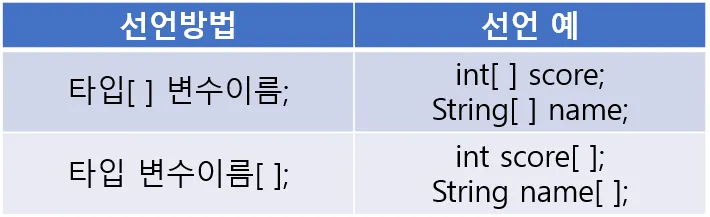 배열의 선언은 타입 뒤 혹은 변수이름뒤에 대괄호([])를 붙히면 된다.