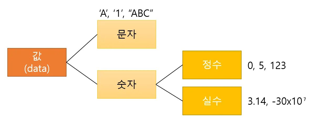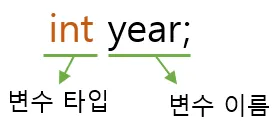 변수 타입: 변수에 저장될 값이 어떤 타입(type)인지 지정하는 것.