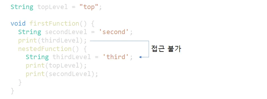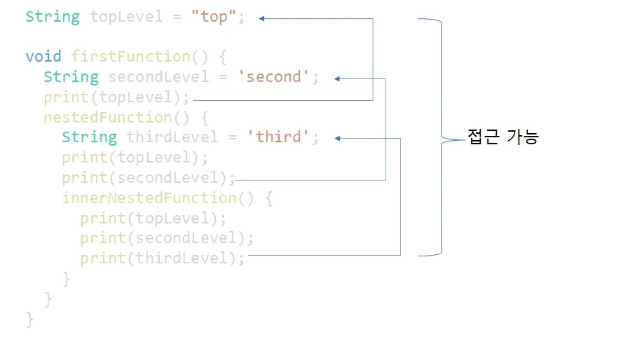 내부 블록에서 외부 블록에 접근은 허용된다.