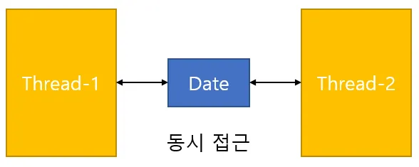 ⇒ thread unsafe하다는 의미는 아래 그림처럼 하나의 Date 인스턴스의 값을 각각 다른 Thread에서 접근해서 변경이 가능하면 기존에 사용하던 Thread에서 변경 되어 잘못된 Date정보를 가져와서 버그가 발생할 위험이 있습니다.