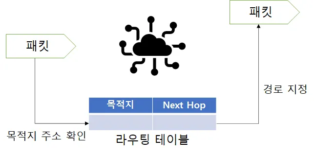 정확한 방향으로 패킷이 전송되도록 경로 지정및 최적 경로로 패킷을 포워딩한다.