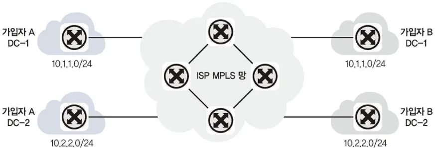 MPLS VPN 기술을 이용하면 여러 가입자가 하나의 망에 접속해 통신하기에 공용 회선을 함께 이용하기에 비용이 낮아진다.