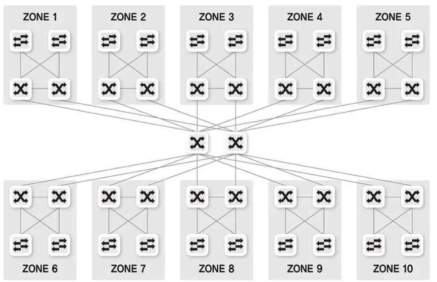 근거리 통신만으로 충분하기에 스위치와 같이 간단한 장비로 연결된 네트워크