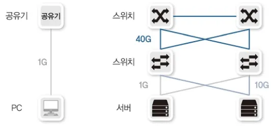 ⇒ 광랜(이더넷): 기가 ~ 100Mbps