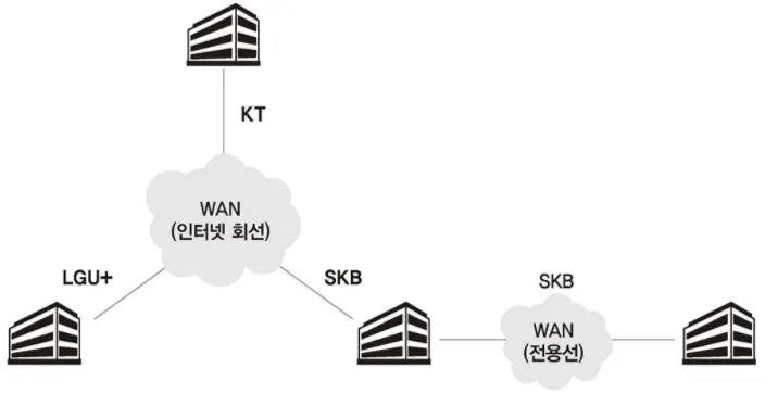 직접 구현하기가 힘들기 때문에 대부분 통신사업자(KT, LGU+, SKB)로부터 회선을 임대해 사용한다.