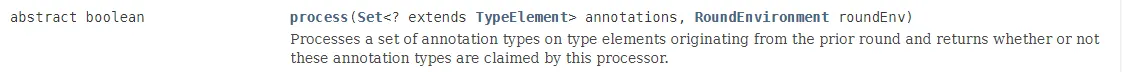 public boolean process(Set<? extends TypeElement> annotations, RoundEnvironment roundEnv) {