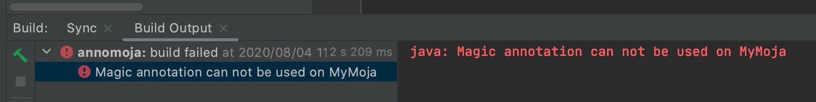의도한대로 인터페이스가 아닌 곳에서의 @Magic 애노테이션 선언은 에러가 발생하는 것을 볼 수 있습니다.
