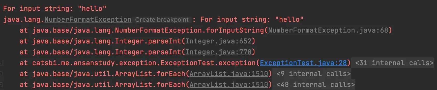 //NumberFormatException 이 발생했을 경우 catch 문에서 예외를 처리하기 위한 코드
