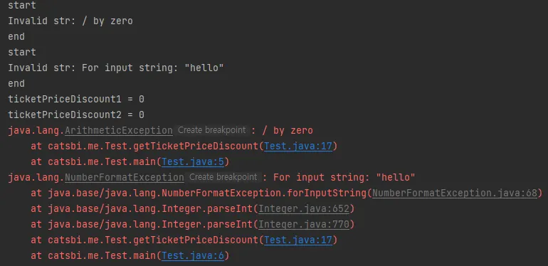 그렇기에 try-catch문을 통해 예측가능한 예외를 처리해주는 것도 중요하지만 이렇게 예외 발생시 try 블럭내의 나머지 코드들이 수행되지 않는다는점을 유의해서 코드를 작성해야 한다.