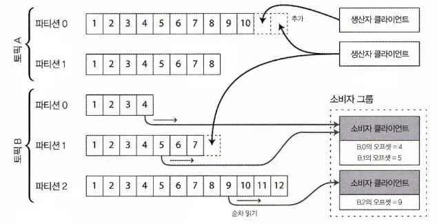 각 파티션 내에서 브로커는 모든 메시지에 오프셋이라 부르는, 단조 증가하는 순번을 보여한다.