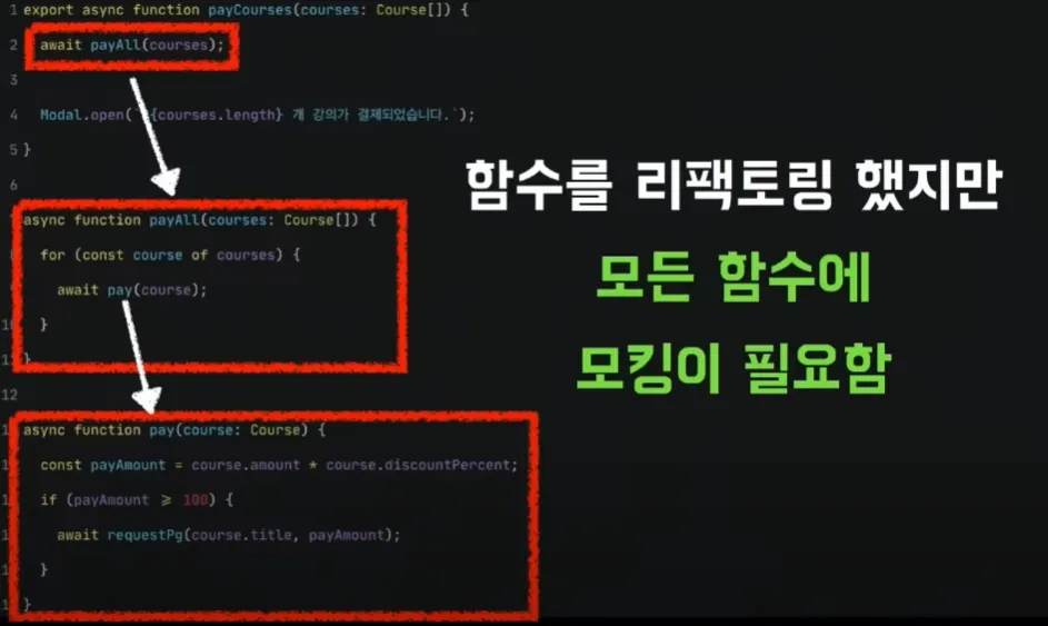 requestPg(course.title, payAmount); 메서드는 외부 API요청이다.