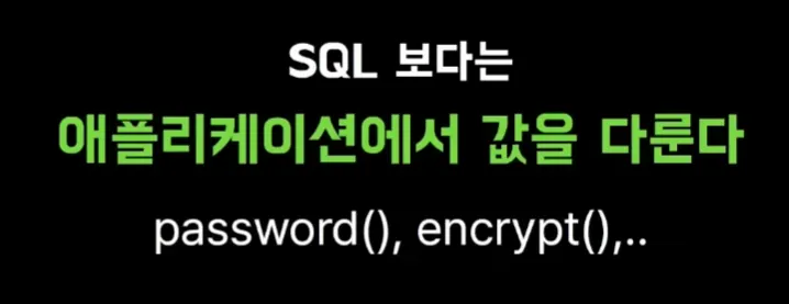 패스워드 발급시 단방향 암호화 등을 SQL에서 password등을 통해 암호화를 할 수 있다.