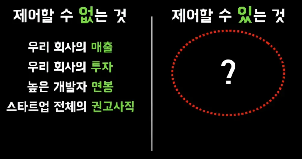 내가 회사의 매출, 투자, 연봉, 생태계의 권고사직 분위기를 제어할 순 없다.