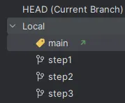 git branch -D ${preview step branch} (ex: git branch -D step1)
