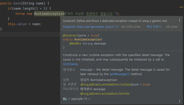 그리고 이런 문서화는 비검사 예외도 검사 예외처럼 문서화해두면 좋다.