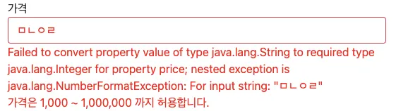 숫자형 Input에 문자를 담아 전송한 경우 볼 수 있는 에러 내용
