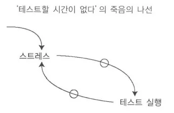 위의 그림은 양성 피드백 고리(positive feedback loop)로 스트레스가 높아질수록 테스트를 하는 빈도가 더 줄게되고, 테스트가 줄어들수록 에러는 많아지고 스트레스는 더 커지게 된다.