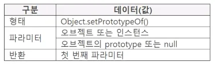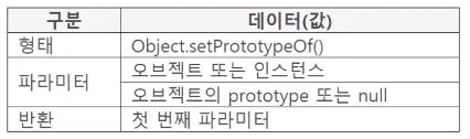 ⇒ obj는 인스턴스입니다. 빌트인 오브젝트에 의해 인스턴스가 생성되기 때문입니다. 그렇기에 obj는 인스턴스인데 인스턴스에는 prototype이 없습니다. prototype을 참조하는 __proto__가 있기에 setPrototypeOf는 인스턴스의 __proto__에 설정하는것과 동일하다 할 수 있습니다.