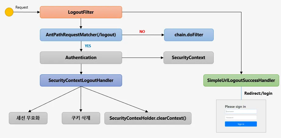→ Security Context를 null로 초기화해주는 작업도 해준다.