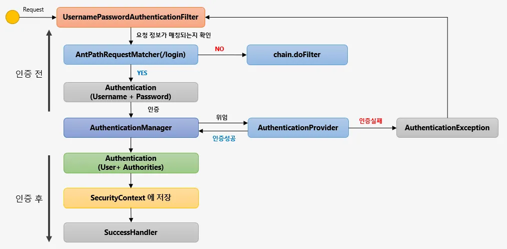 → 여기까지가 인증처리를 하기전에 필터가 하는 역할.