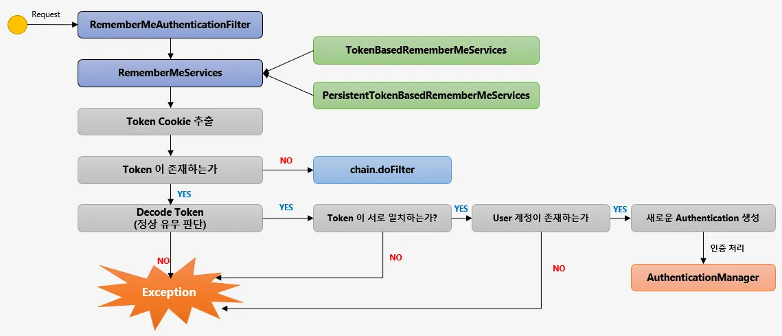 인가 예외(AccessDeniedException)는 익명 사용자이거나 RememberMe사용자일 경우 AccessDeniedHandler를 호출하지 않고 AuthenticationException 에서 처리하는 로직으로 보내게 된다.