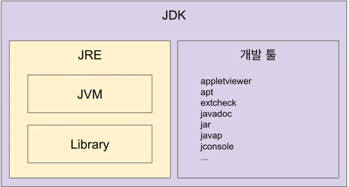 JDK(Java Development Kit): JRE + 개발 툴