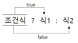 조건식이 true이면 2번째 피연산자인 식1이, 조건식이 false이면 3번 째 피연산자인 식2이 반환된다.  조건식의 가독성을 위해 괄호로 감싸도 되지만 필수는 아니다.