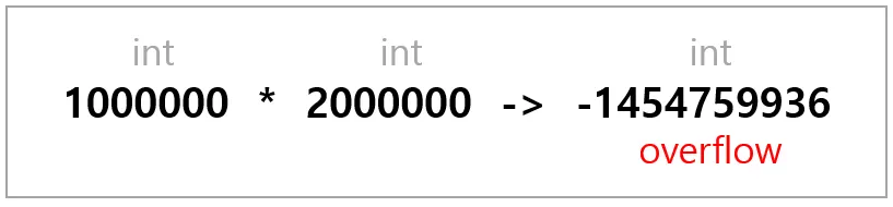 그렇기에 해당 연산이 진행되기 전  하나의 피연산자를 충분한 크기의 자료형으로 형변환을 해서 타입일치를 시켜 충분한 범위를 확보해야 한다.