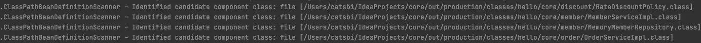 로그를 잘 살펴보면 컴포넌트 스캔이 컴포넌트 어노테이션이 붙은 스프링 빈을 잘 캐치해서 등록한 것을 확인할 수 있다.