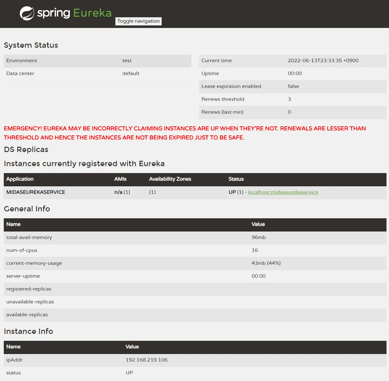 http://localhost:8761/eureka/apps/midaseurekaservice 으로 특정 서비스 확인하기