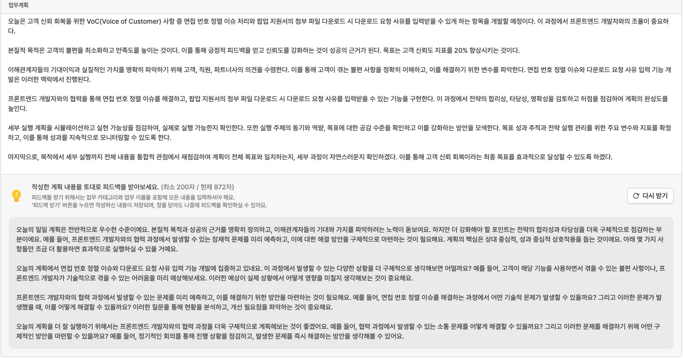 작성한 내용 토대로 피드백 받기 템플릿