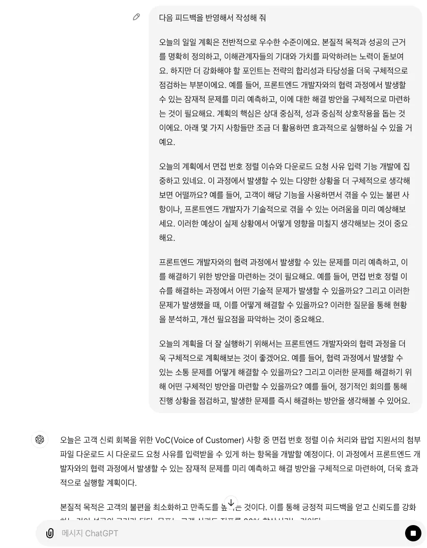 응답 결과를 기준으로 피드백받은 뒤 해당 내용을 통해 프롬프트 수정 + 데이터 가공해서 작성한다.