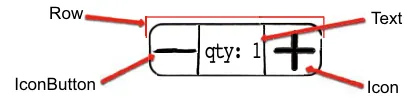 위 그림은 장바구니앱의 수량을 나타내는 QuantityCount (StatefulWidget)으로 여러 내장 위젯을 조합해 만든 커스텀 위젯이다.