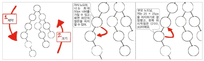 트리를 거슬러 올라가며 각 위젯의 크기와 위치를 안전하게 계산한다.