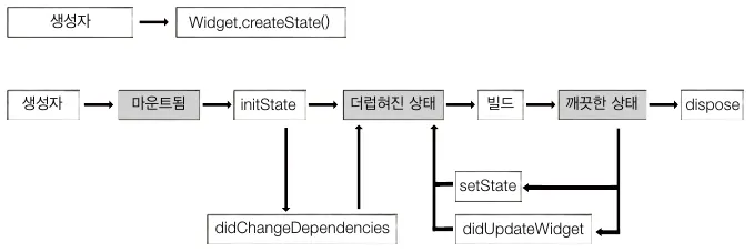 이렇게 위젯을 빌드하고 갱신하는 과정을 생명주기(life-cycle)이라 한다.