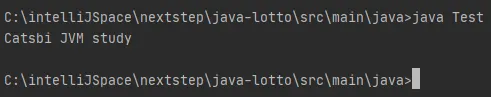 이전 컴파일 과정에서 생성한 .class 파일을 java 명령어(java 파일명)로 실행시킨다.