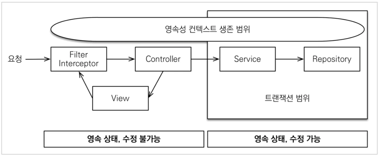 보통 서비스 계층에서 트랜잭션을 유지한다. 두 서비스 모두 트랜잭션을 유지하면서 지연로딩을 사용할 수 있다.