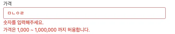(ex: 상품의 가격은 1000원 이상이여야 하는데 500원으로 작성)