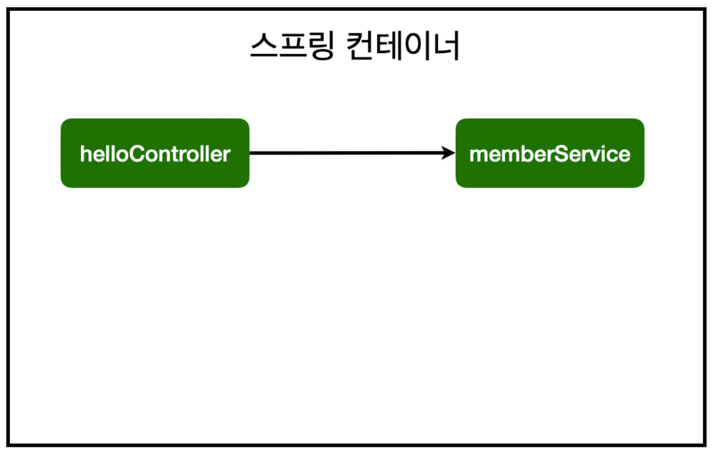 helloController는 memberService의 기능들을 사용하며 의존관계가 수립됩니다.