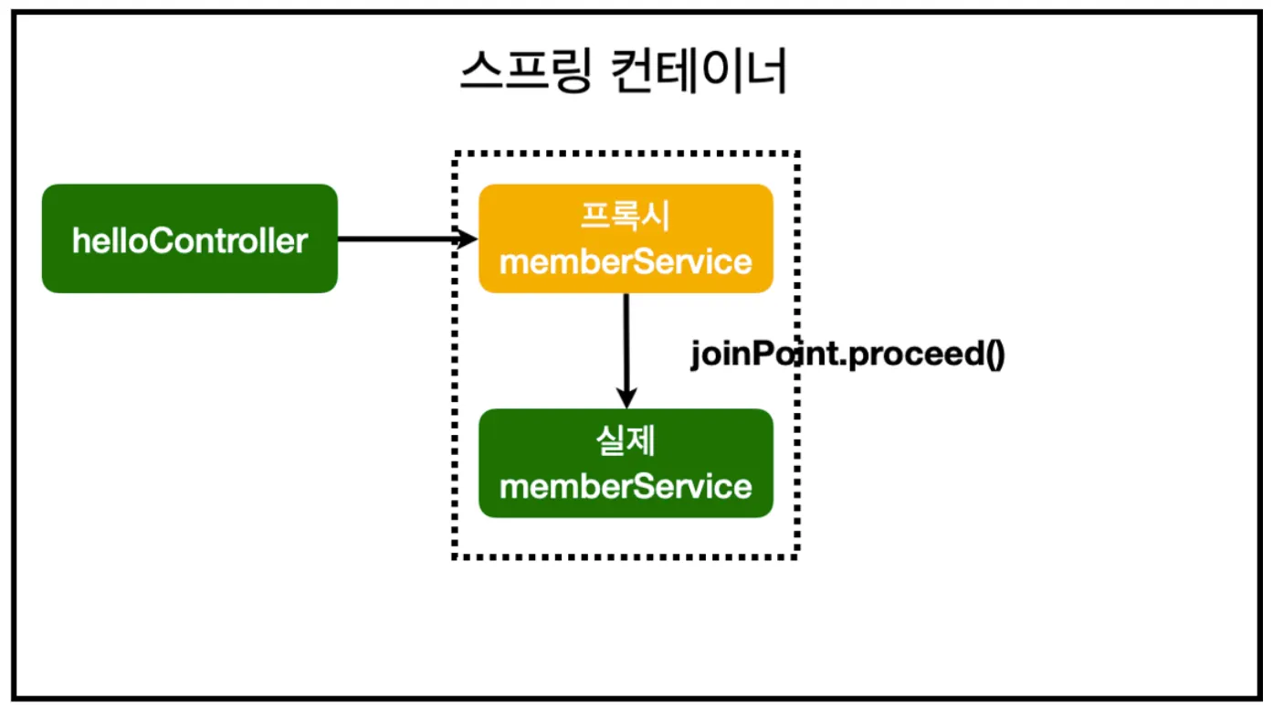 컨트롤러에서는 memberService의 실제 객체(Real Subject)에 바로 접근하여 로직을 수행시킵니다.