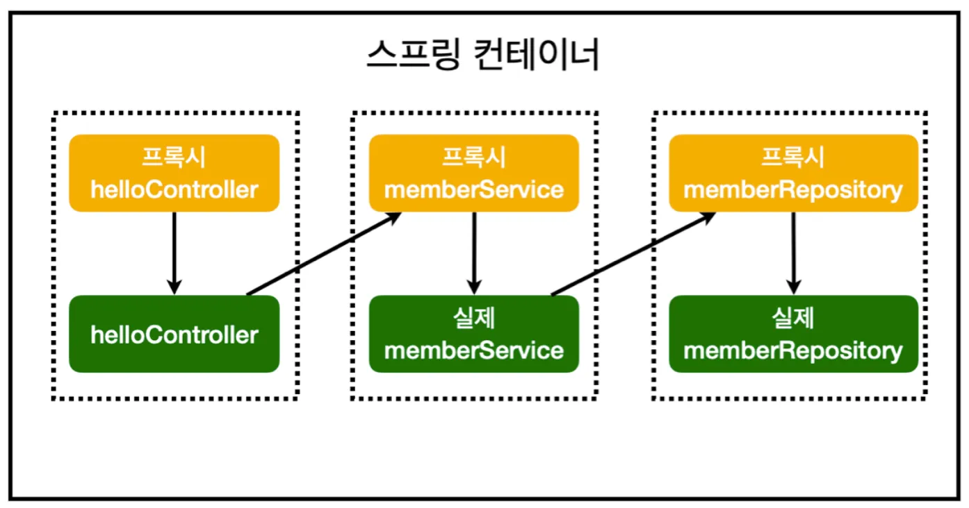 helloController와 memberService 간에 프록시 객체인 memberServiceProxy가 추가되었습니다.